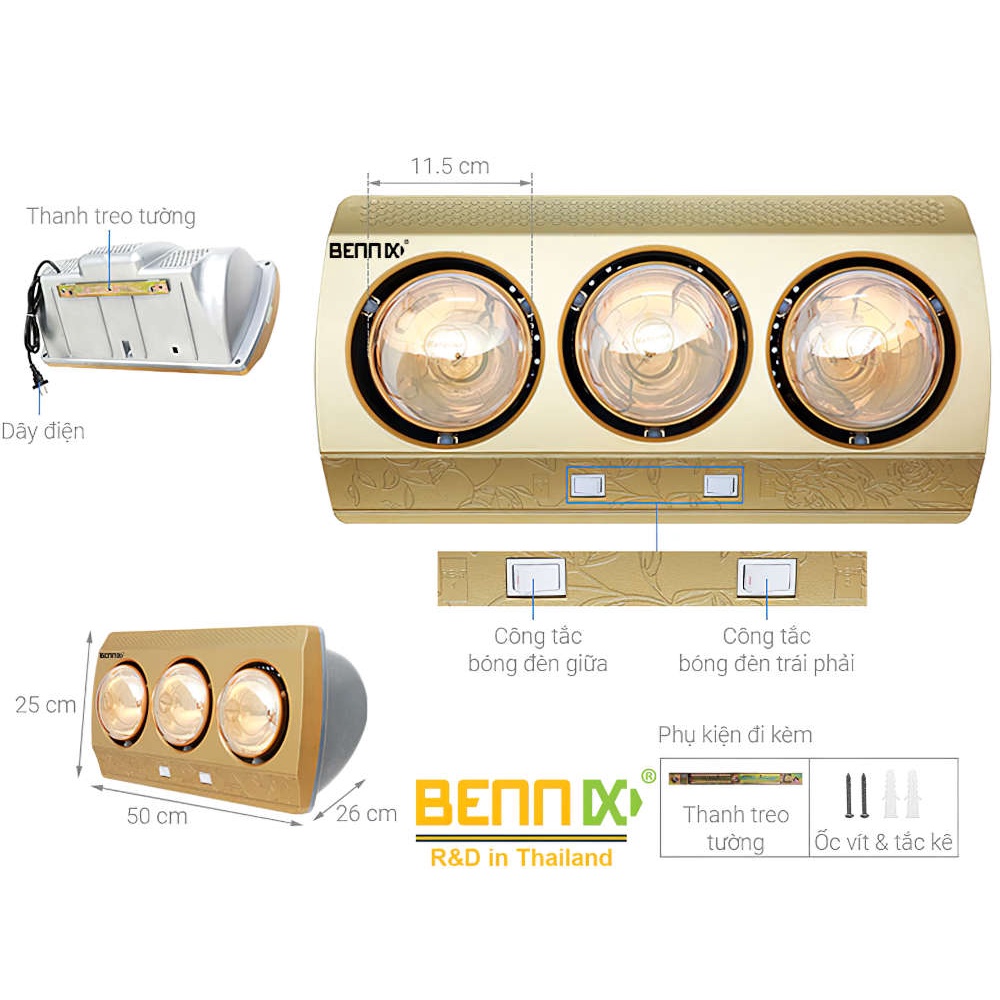 Thiết Bị Điện Gia Dụng > Thiết bị điện gia dụng lớn > Máy sưởi || Đèn sưởi nhà tắm 2 bóng Bennix Thái Lan BN-3G hàng chính hãng, bảo hành 36 thángCòn hàng