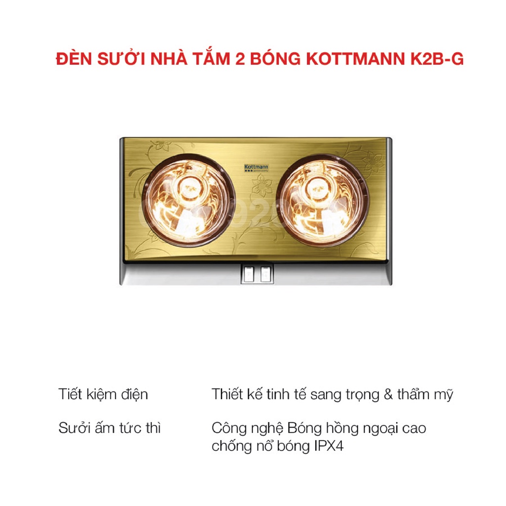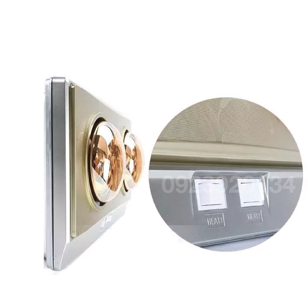 - Bảng điều khiển: 2 công tắc điều khiển cho 2 bóng sưởi hồng ngoại.