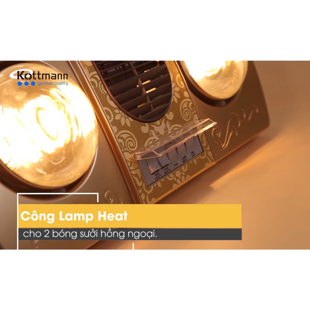 Thiết Bị Điện Gia Dụng > Thiết bị điện gia dụng lớn > Máy sưởi || Đèn sưởi nhà tắm 2 bóng kèm gió thổi nóng Kottmann K2BHWG [K2-BHW-G]Còn hàng