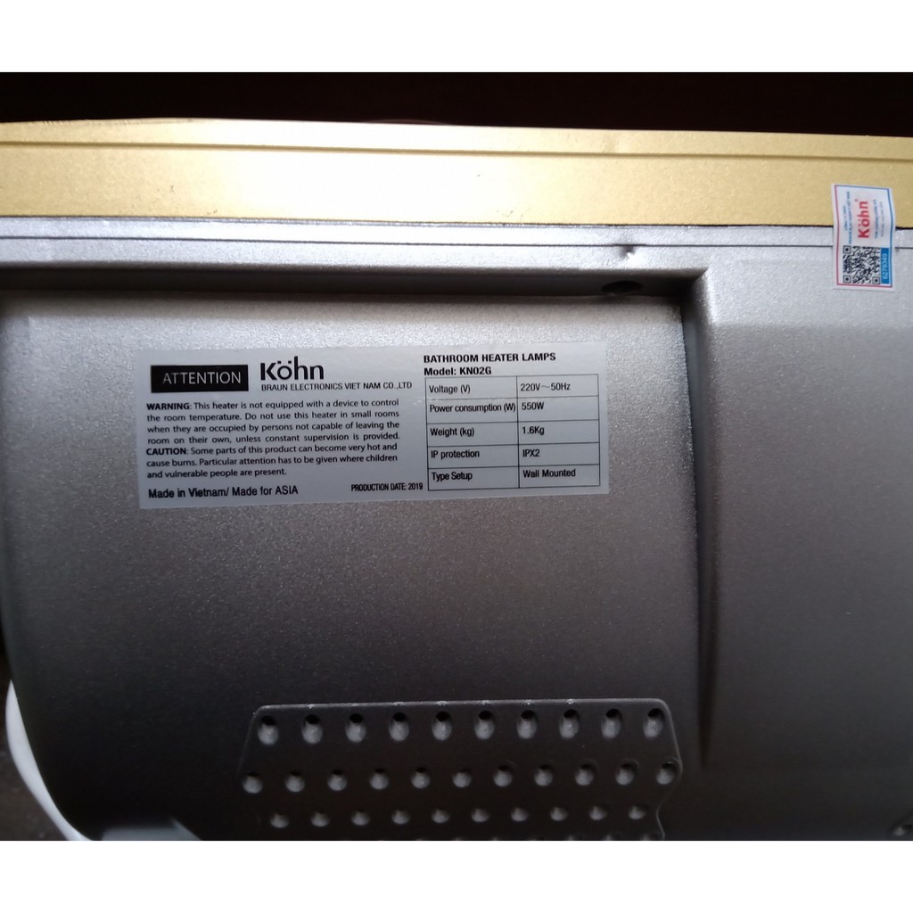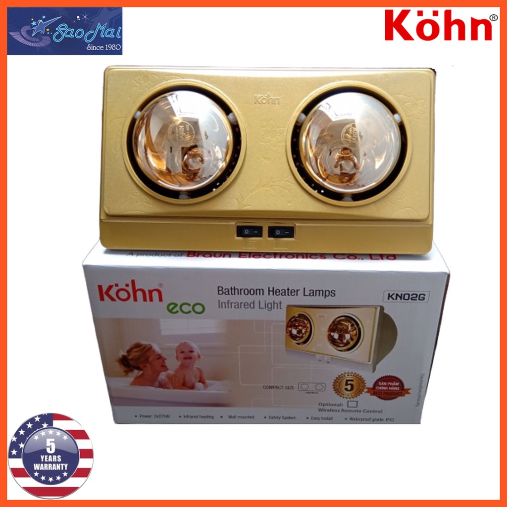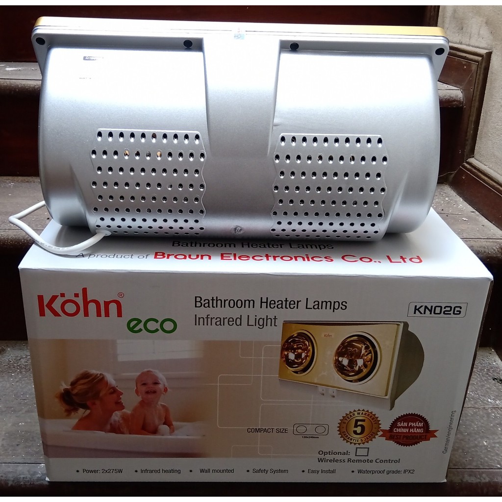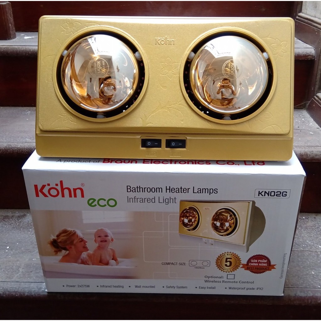 🔵 Đèn sưởi nhà tắm hồng ngoại 2 bóng Braun Kohn Eco KN02G hãng phân phối - Bảo hành 5 năm:▶ Thiết kế đẹp mắt, màu sắc trang nhã có thể dùng để trang trí phòng tắm..