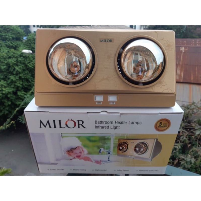 Đèn sưởi nhà tắm 2 bóng Milor ML6002 với công suất 550W cho ánh sáng dịu nhẹ, ấm ápTrong thời tiết lạnh cắt da cắt thịt của mùa đông thì được ngâm mình trong bồn nước ấm với không gian ánh sáng lung linh, ấm áp thì còn gì tuyệt vời hơn? Đèn sưởi nhà tắm treo tường Milor có thiết kế nhỏ gọn, dễ dàng treo tường, tiết kiệm không gian sử dụng. Đèn sưởi Milor có thiết kế sang trọng, màu vàng ấm áp sẽ làm tôn lên vẻ đẹp của căn phòng nhà bạn.