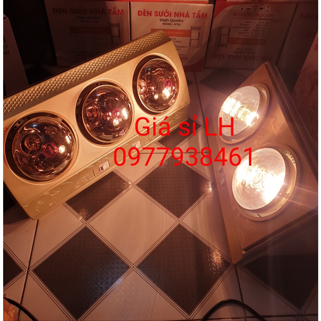 + Đèn sưởi có 2 mẫu 2 bóng và 3 bóng đui sứ, dây thuỷ tinh chống cháy nổ