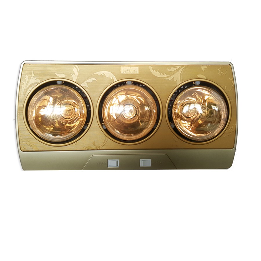 ▶ Đèn sưởi nhà tắm 3 bóng Kohn KN03G 825W (Vàng) được sản xuất và thiết kế theo phong cách Châu Âu với 3 bóng vàng sang trọng có tác dụng chiếu sáng, sưởi ấm trong phòng tắm gia đình..