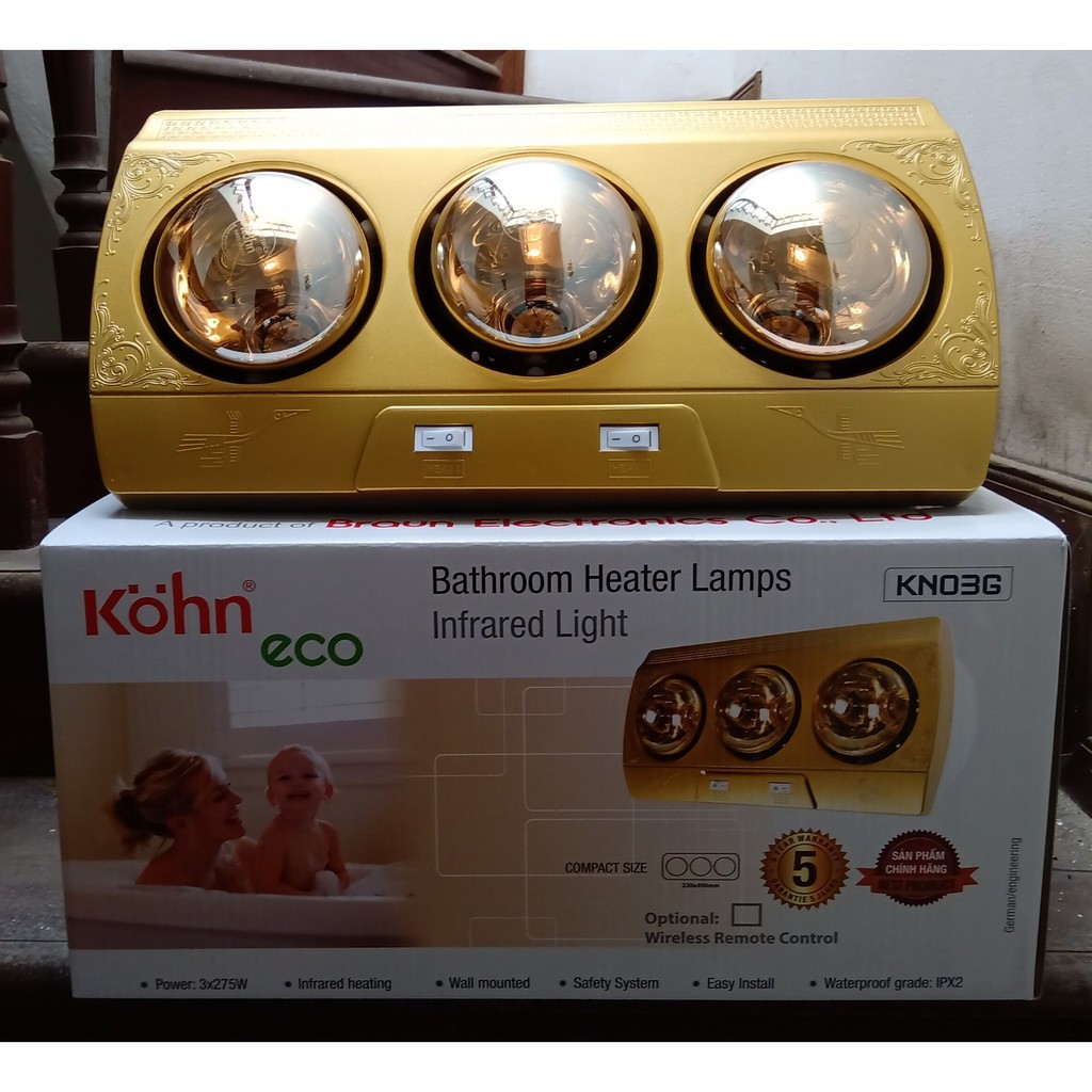 Đèn sưởi nhà tắm 3 bóng Braun Kohn Eco KN03G hãng phân phối và KP03G