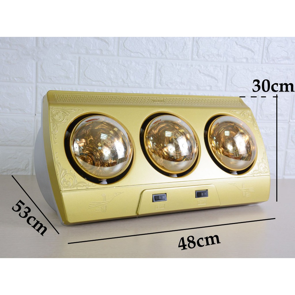 ☛ Đèn sưởi nhà tắm 3 bóng Kohn KN03G 825W (Vàng) được sản xuất và thiết kế theo phong cách Châu Âu với 3 bóng vàng sang trọng có tác dụng chiếu sáng, sưởi ấm trong phòng tắm gia đình..