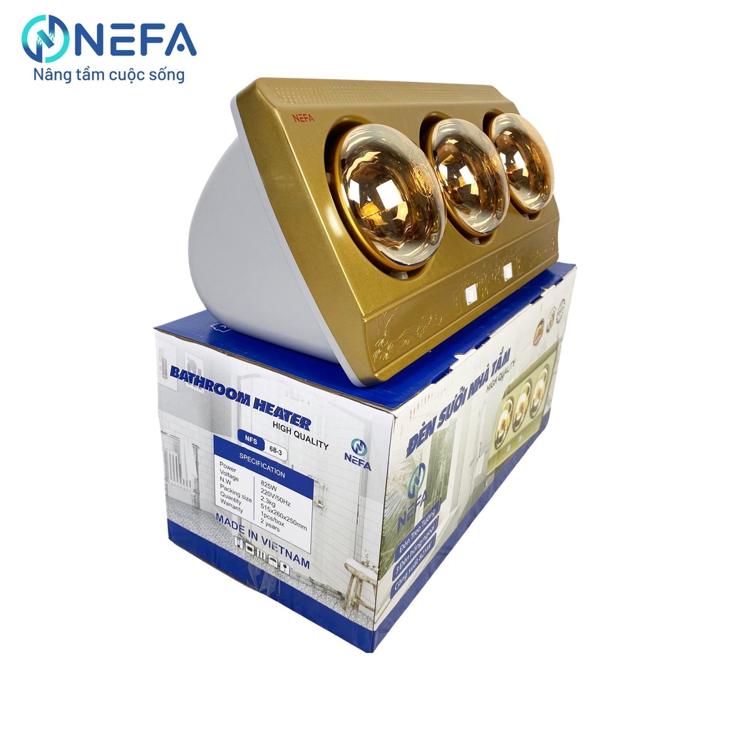 Giới thiệu Đèn sưởi nhà tắm 3 bóng hồng ngoại NEFA NFS68-3, Bảo hành 24 tháng, An toàn chuyên dụng cho miền Bắc