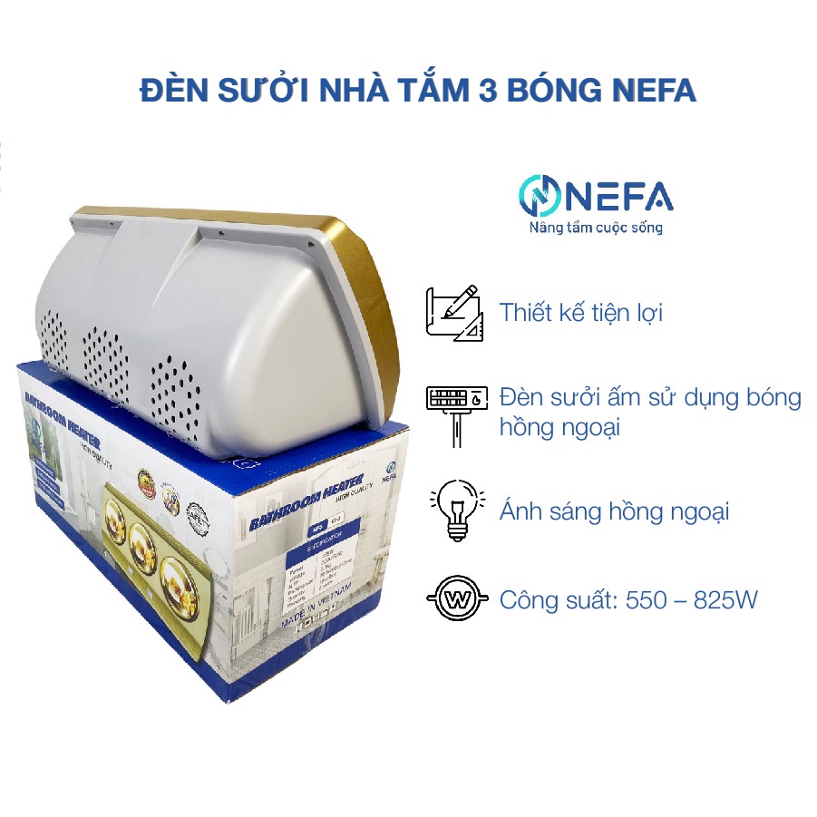 Thiết Bị Điện Gia Dụng > Khác || Đèn sưởi nhà tắm 3 bóng NefaCòn hàng
