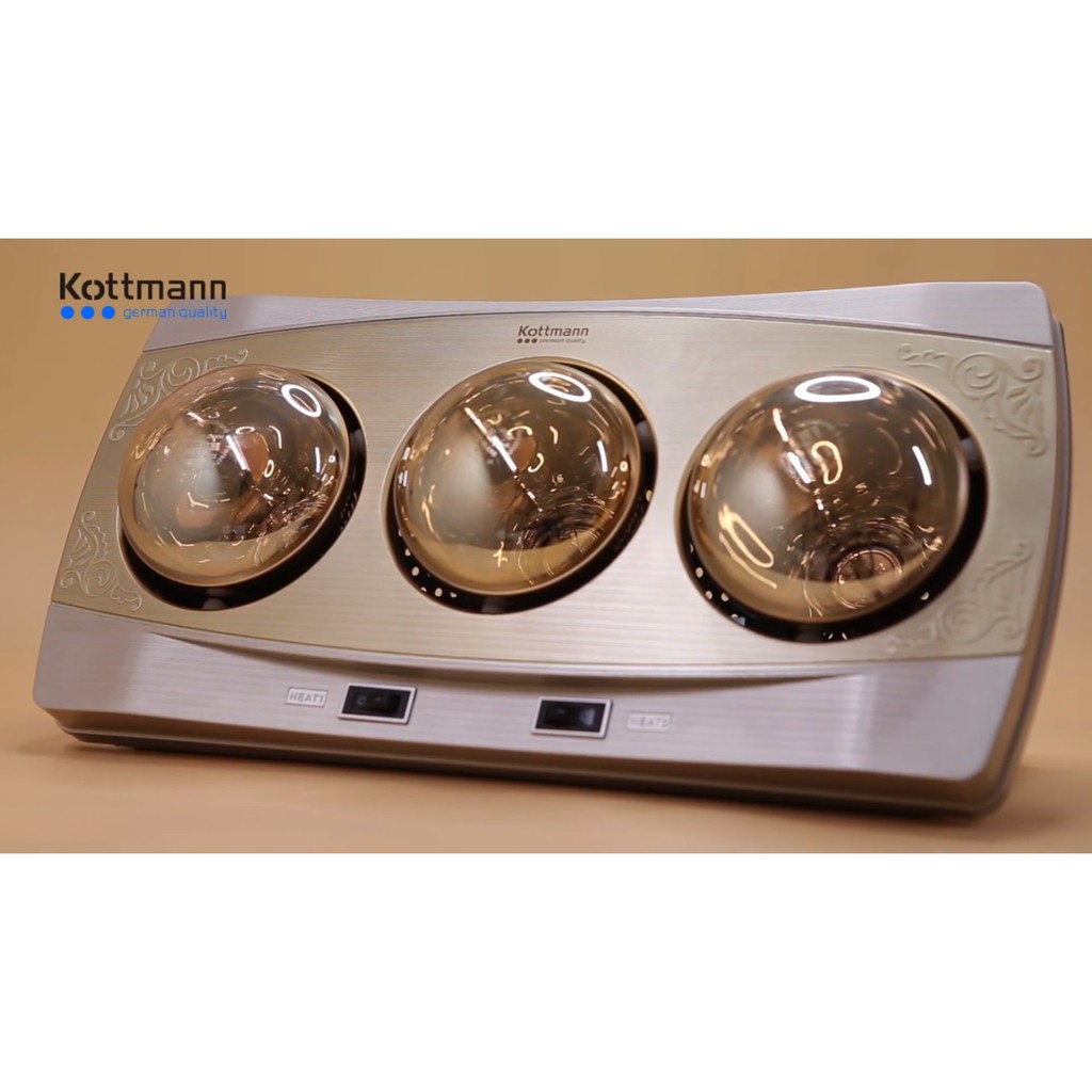 ▶ Đèn sưởi nhà tắm Kottmann 3 bóng K3BH không gây khô da, không chói mắt.