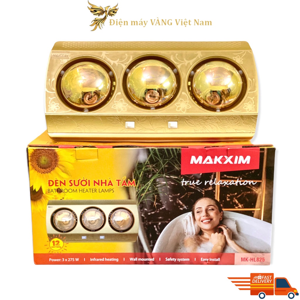 Thiết Bị Điện Gia Dụng > Thiết bị điện gia dụng lớn > Máy sưởi || Đèn sưởi nhà tắm 3 bóng vàng Makxim HL825 - Lắp treo tườngCòn hàng