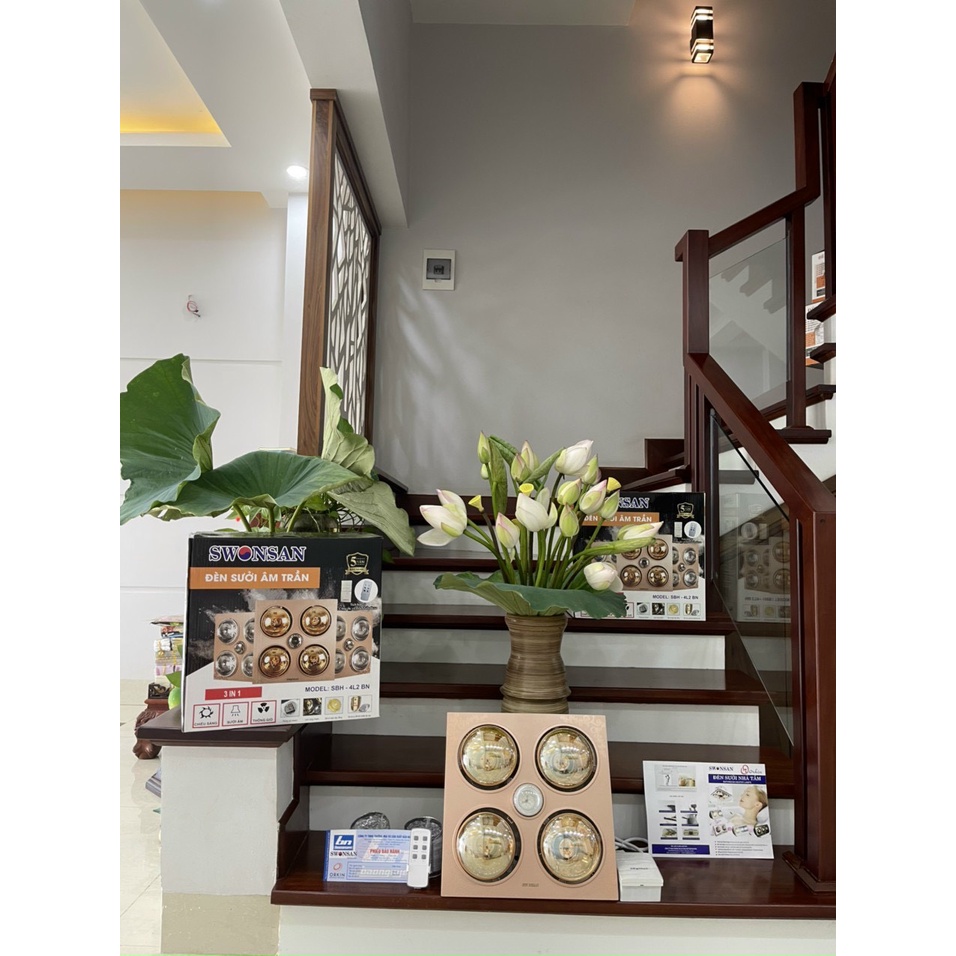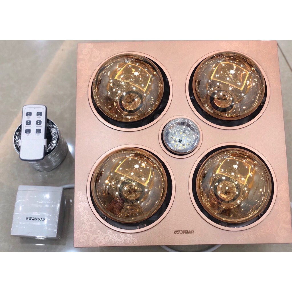 Đèn sưởi nhà tắm Swonsan âm trần 4 bóng, kết hợp Led chiếu sáng và thông gió.Tích hợp điều khiển từ xa + Công tắc gắn tường tiện dụng - cho 1 mùa đông ấm áp