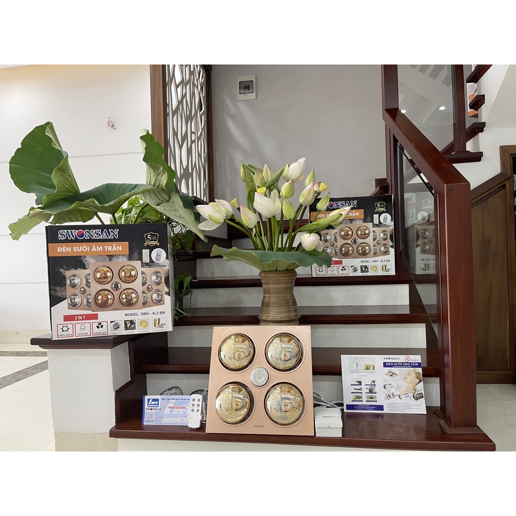 Đèn sưởi nhà tắm Swonsan Model: SBH-4L2BN thiết kế 4 bóng, cùng với 1 bảng điều khiển điện tử sang trọng. Đèn sưởi nhà tắm Swonsan Model: SBH-4L2BN có những ưu điểm được nhiều gia đình tin tưởng lựa chọn.