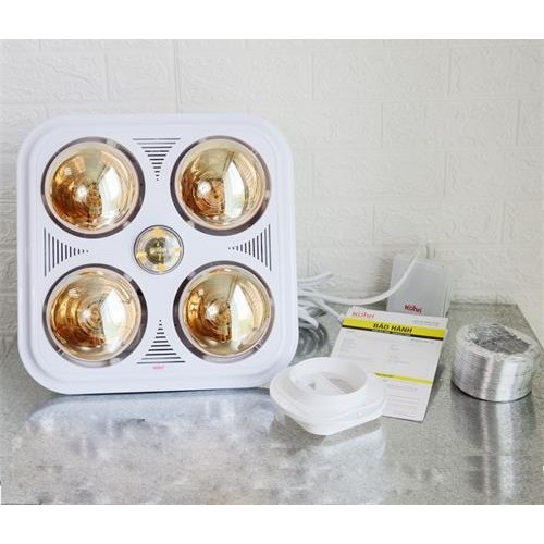 Đèn sưởi nhà tắm 4 bóng kèm quạt thông gió Kohn BU04GR được sản xuất theo tiêu chuẩn chất lượng nghiêm ngặt của các chuyên gia hàng đầu tại Braun - thương hiệu đèn sưởi số 1 của CHLB Đức hiện nay. Sản phẩm tiện ích và thân thiện với môi trường.Sản phẩm được thiết kế theo phong cách Châu Âu với 4 bóng vàng sang trọng và 1 quạt thông gió, vừa có tác dụng chiếu sáng, sưởi ấm và làm thoáng khí trong phòng tắm gia đình. Đèn sử dụng nguyên lý bức xạ hồng ngoại, không đốt oxy, có lợi cho sức khỏe, không gây khô da nhất là với người già và trẻ em trong những ngày mùa đông giá lạnh.