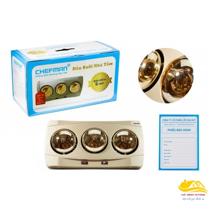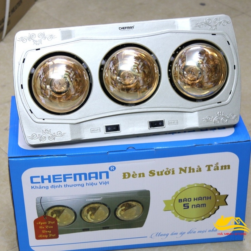 Đèn sưởi nhà tắm Chefman 2 3 bóng sưởi ấm nhanh chống ẩm chống lóa mắt - đèn sưởi hồng ngoại Hà Minh Store