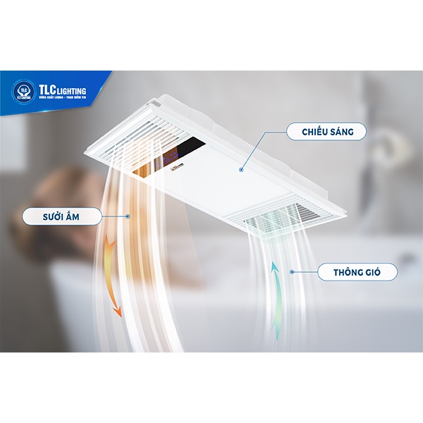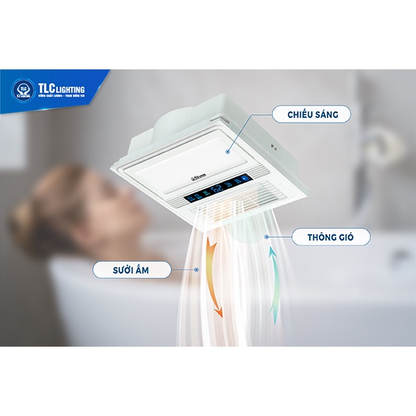 Giới thiệu Đèn sưởi nhà tắm đa năng, Quạt sưởi âm trần TLC 4 mùa công suất lớn có thiết kế vô cùng an toàn cho người sử dụng