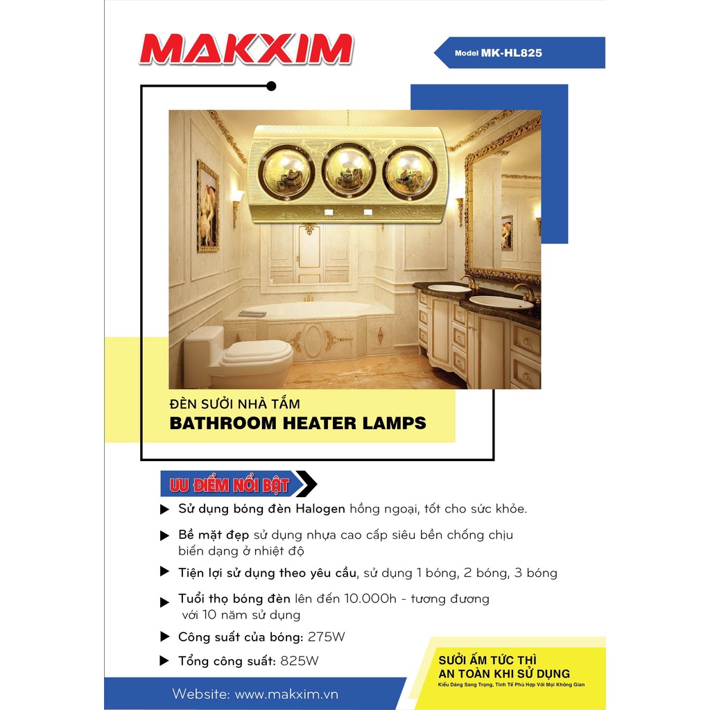 Thiết Bị Điện Gia Dụng > Thiết bị điện gia dụng lớn > Máy sưởi || Đèn sưởi nhà tắm MAKXIM - hàng chính hãngCòn hàng