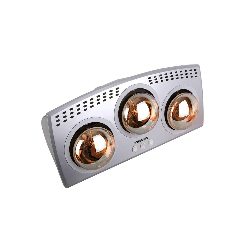 Đèn sưởi nhà tắm 3 bóng Tiross TS9292 an toàn cho mắt trẻ nhỏ.Bóng đèn sưởi được bao phủ lớp mạ vàng giúp giảm độ chói sáng nhưng không làm giảm hiệu quả làm ấm. 3 bóng hồng ngoại hoạt động độc lập giúp người sử dụng dễ dàng chọn chế độ mong muốn.Đèn sưởi nhà tắm 3 bóng Tiross TS9292 sử dụng bóng sưởi có tuổi thọ cao