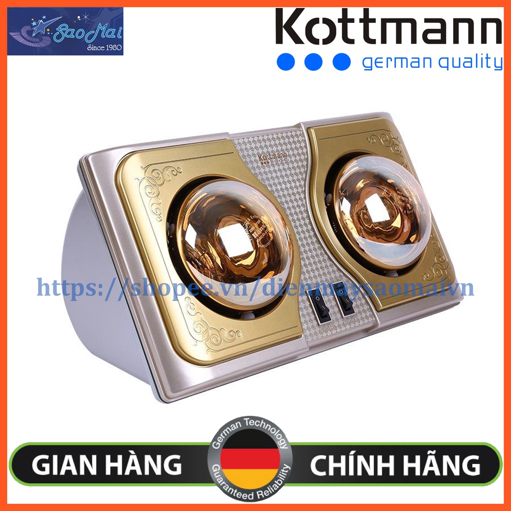 Đèn sưởi nhà tắm Kottmann 2 bóng K2B thiết kế công tắc riêng biệt, tiết kiệm điện năng.