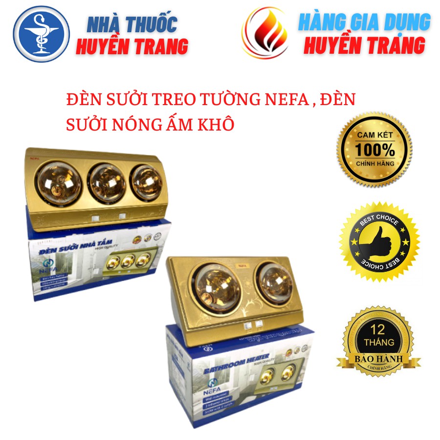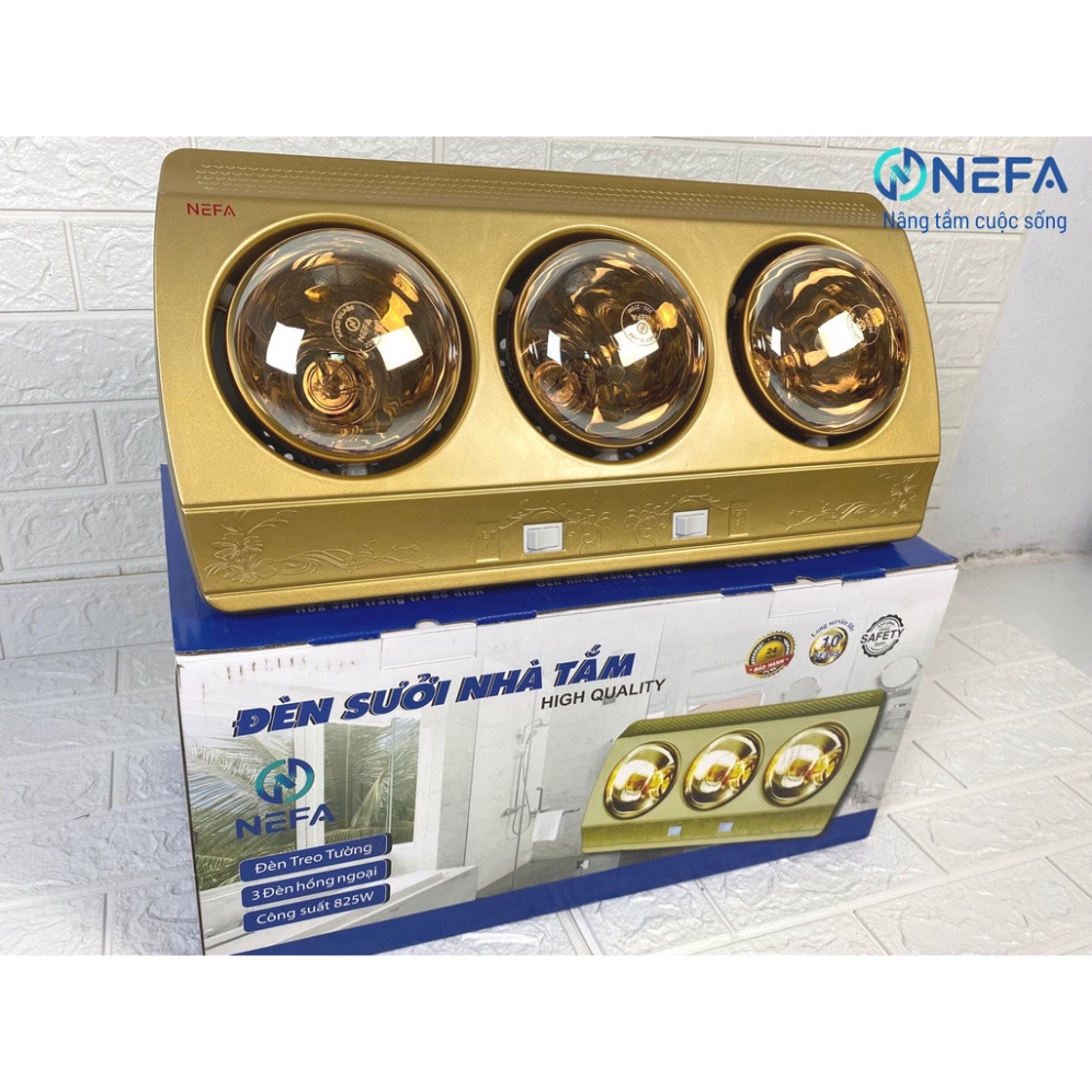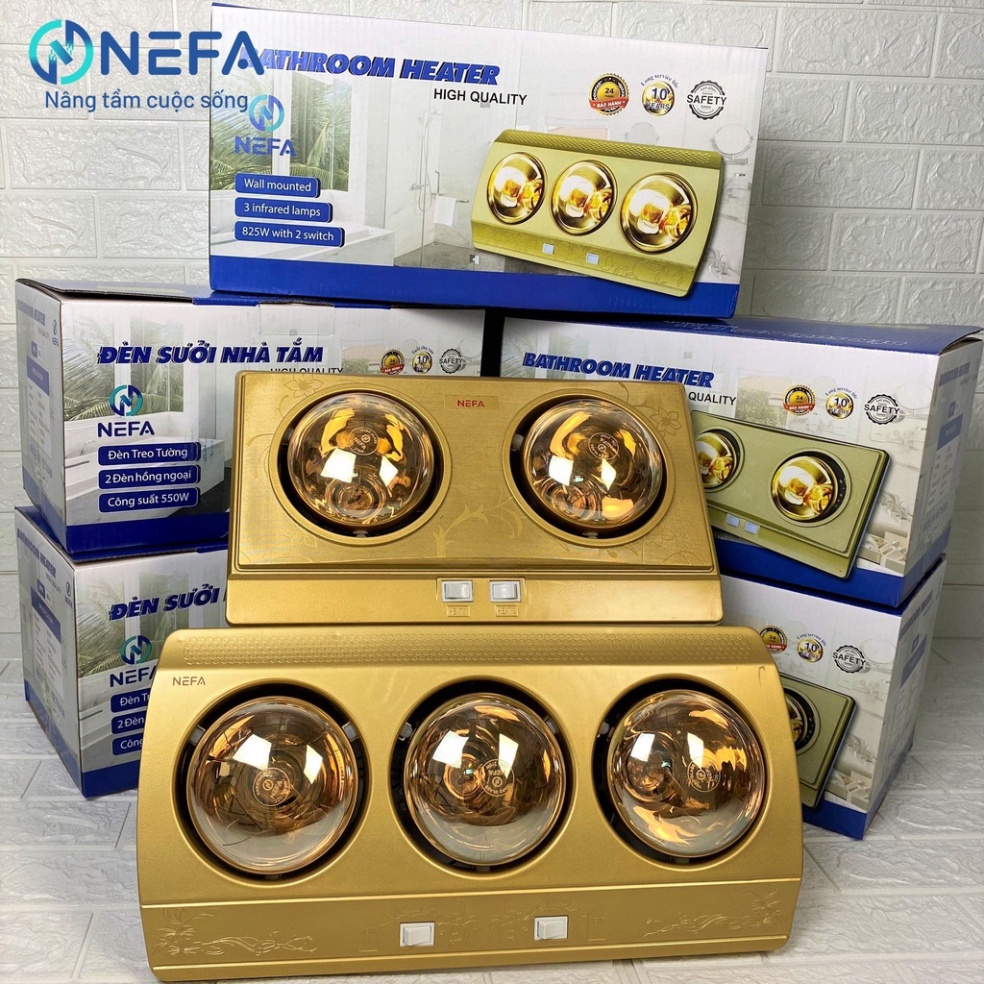 Đèn Sưởi phòng tắm Treo Tường Nefa, Đèn sưởi Nhà Tắm 2 bóng, 3 Bóng Tiện Lợi, đèn sưởi nóng ấm khô [Bảo hành 24 tháng]