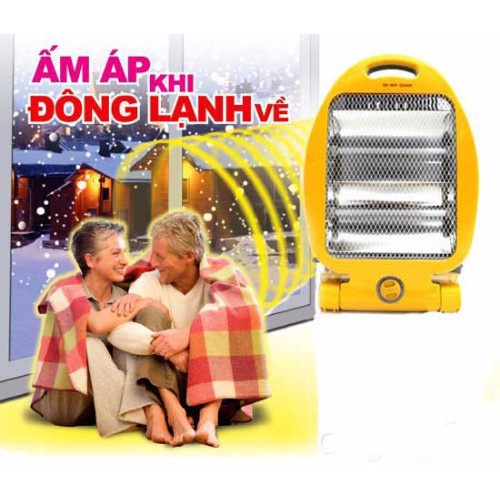 Tỏa nhiệt bằng hai bóng đèn halogen chỉ trong khoảng thời gian ngắn có thể làm ấm cả căn phòng khoảng 15m2.