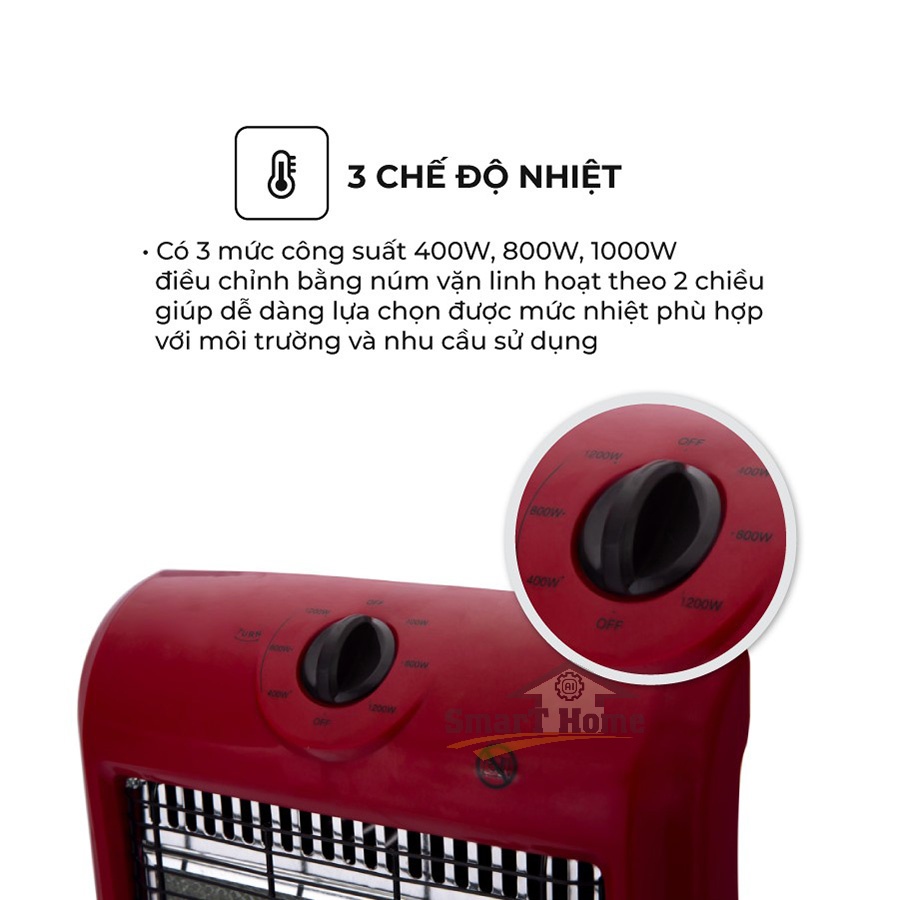 Đèn Sưởi Sunhouse 3 Bóng SHD7016 - Máy Sưởi Ấm Phòng Ngủ 3 Mức Nhiệt , Quay Tản Nhiệt Đều , Tự Ngắt Khi Đổ BH 12 Tháng