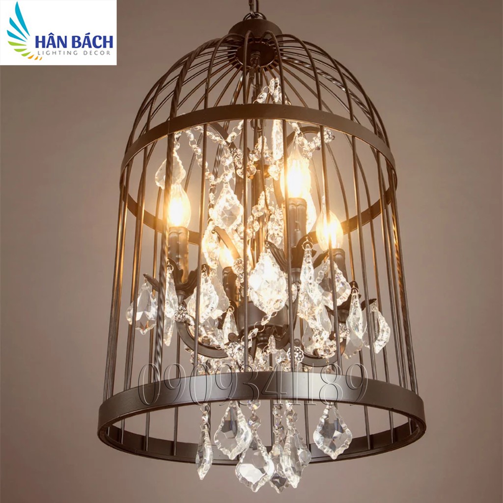 ĐÈN THẢ TRANG TRÍ KIỂU DÁNG LỒNG CHIM KẾT HỢP PHA LÊ NẾN