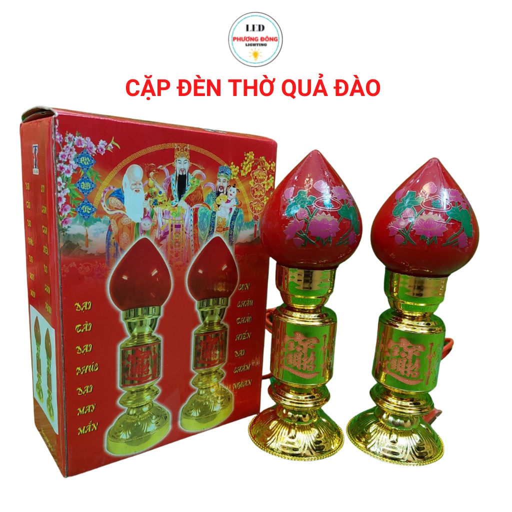 Cặp Đèn Thờ Quả Đào Trang Trí Lễ Tết số 1, 2, 3, 5, 6 Tia Sáng