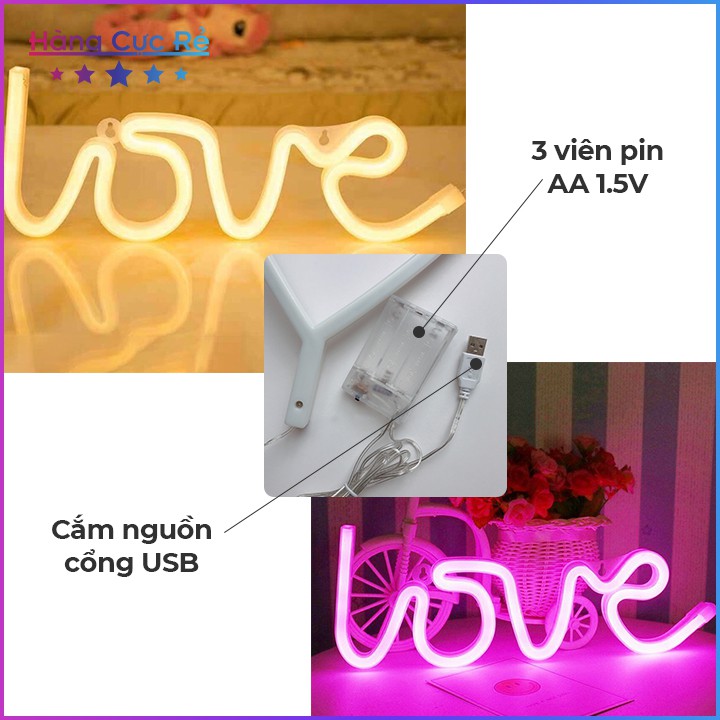 Đèn trang trí chữ LOVE màu Led Neon vàng hồng tặng kèm 3 pin AA 1.5V ❤️Freeship❤️ Shop Hàng Cực Rẻ