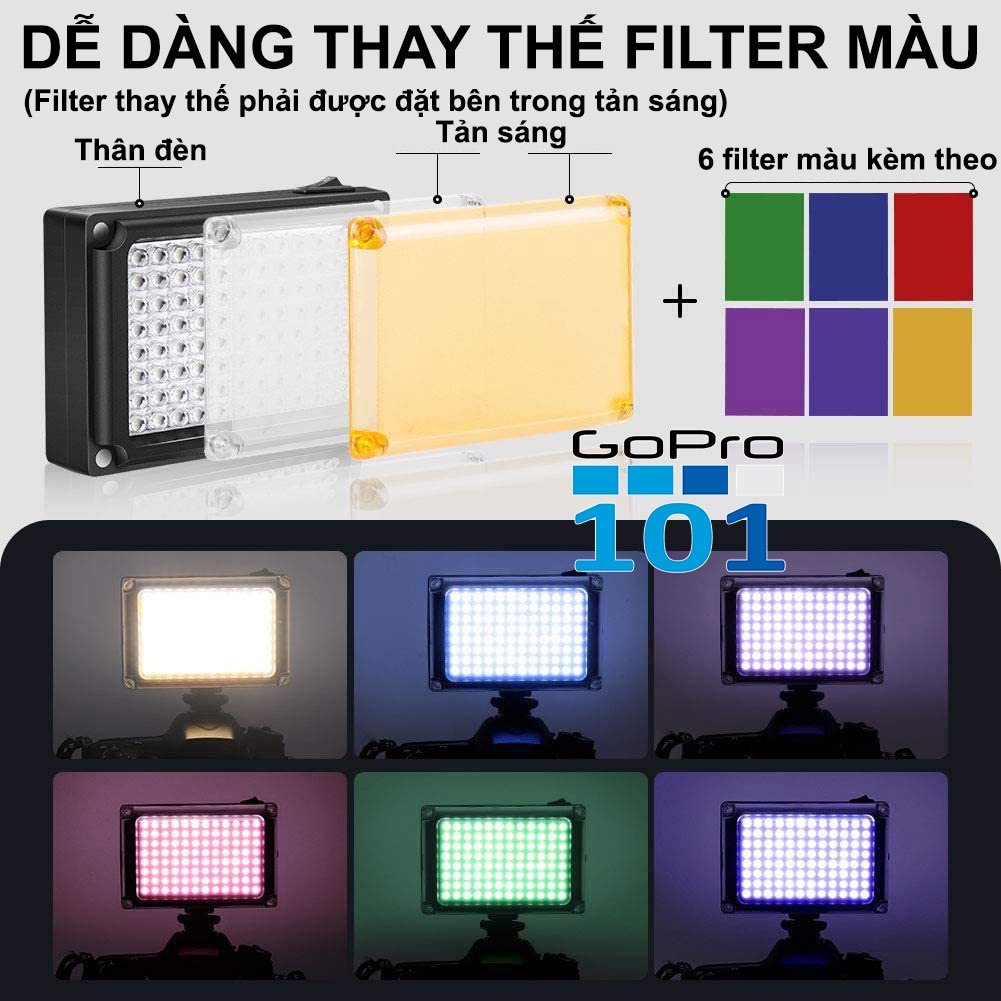 Đèn trợ sáng quay video camera, GoPro 96 LED 112 LED kèm 6 filter màu hỗ trợ chụp ảnh tự sướng tiện lợi - GoPro101