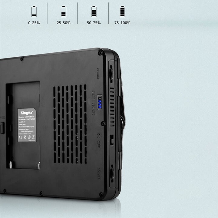 1 giờ 20 phút ở độ sáng cao nhất khi sử dụng pin NP-F970 (6600mAh)
