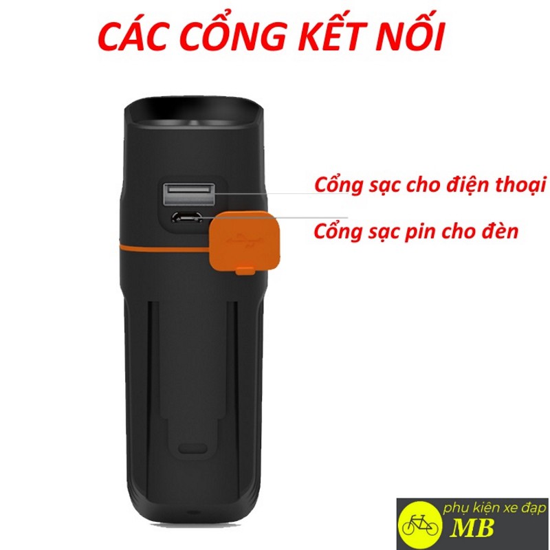 đèn xe đạp siêu sáng tích hợp sạc dự phòng này em xin khẳng định với quý khách trong tầm giá 500 đến 700 ngoài thị trường không có mẫu nào sáng hơn nó vì nó quá sáng với 3 bóng led L2 là loại led hiệu suất cao ánh sáng mạnh với chip led cao cấp số 1 cho đèn xe đạp tại thời điểm hiện tạiCHI TIẾT SẢN PHẨM đèn xe đạp siêu sáng 3 mắt led tích hợp sạc dự phòng: