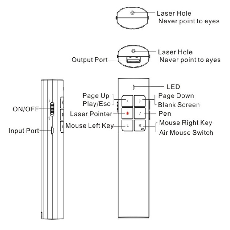 - Để tránh tổn thương mắt, xin vui lòng không hướng trực tiếp tia laser vào mắt