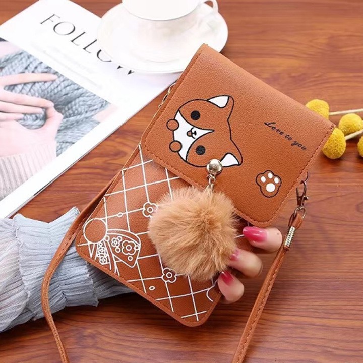 Điện Thoại & Phụ Kiện > Phụ kiện > Túi đựng điện thoại || Đeo chéo đựng điện thoại cảm ứng mặt sau hình cún đáng yêu WQ030 ShallaCòn hàng