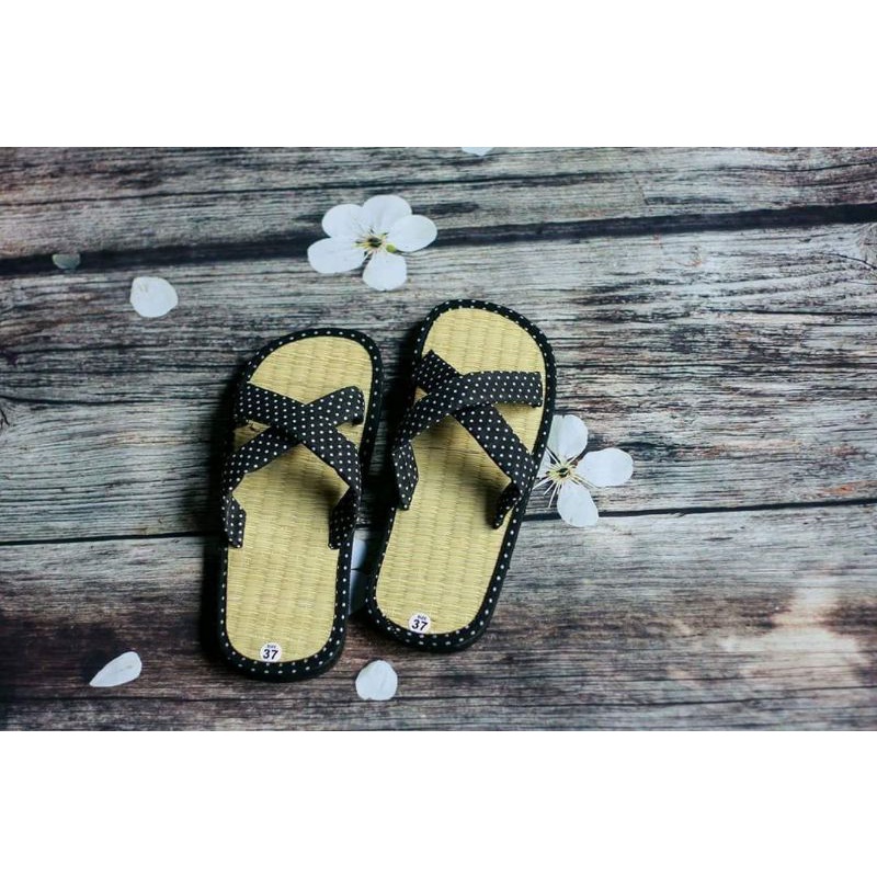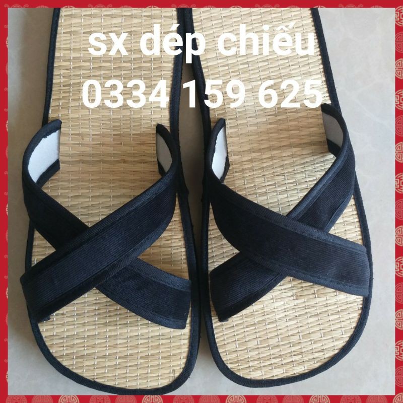 Dép chiếu coi chéo nhung rất êm, mềm, ôm chân.Sản phẩm làm từ nguyên liệu thiên nhiên chiếu, vải tốt cho sức khỏe thấm mồ hôi chân, k cấn hay đau chân.