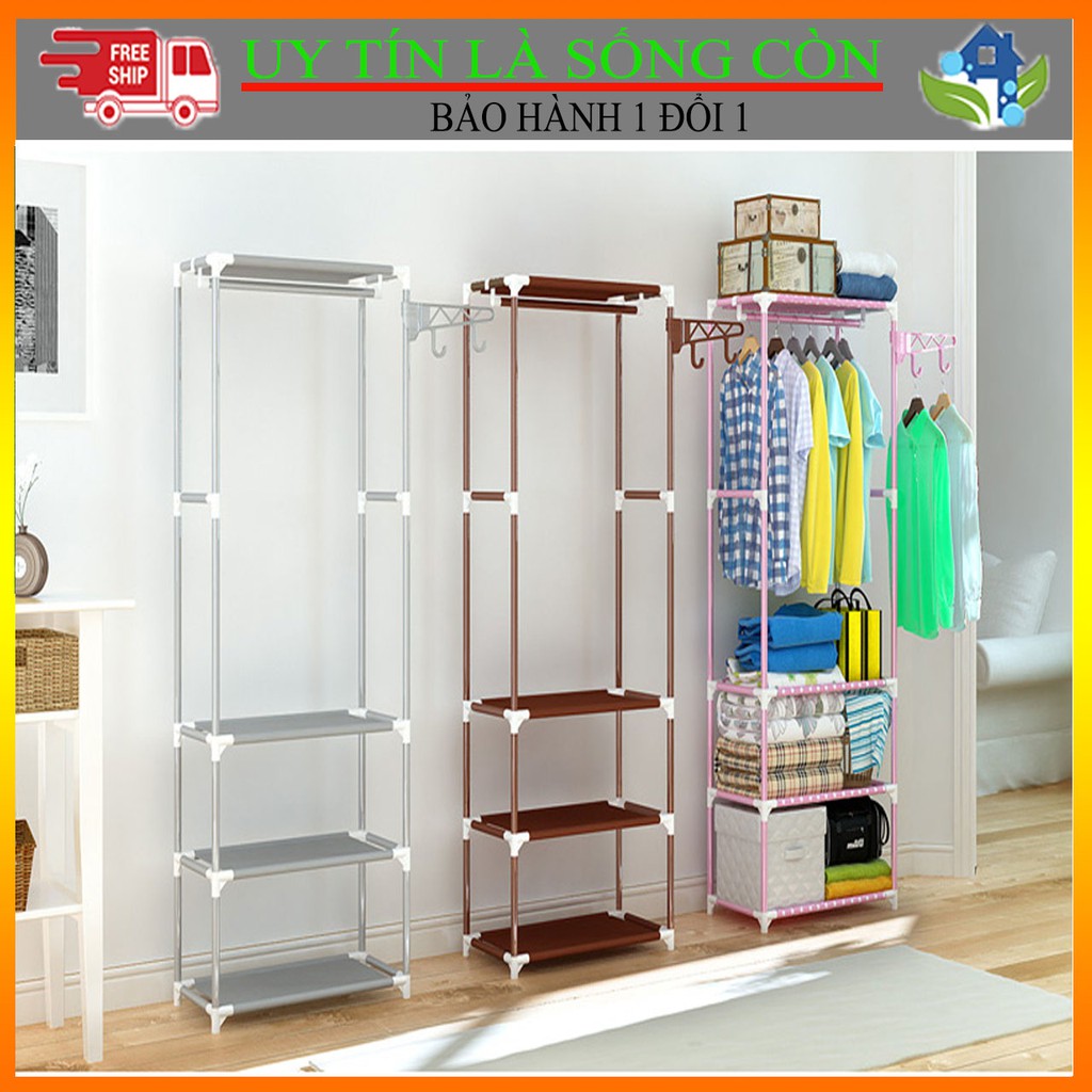 ❸ Khung sắt sơn tĩnh điện chắc chắn, cao rộng treo được nhiều đồ có thêm tầng để đựng vali du lịch, Quần Áo bò…