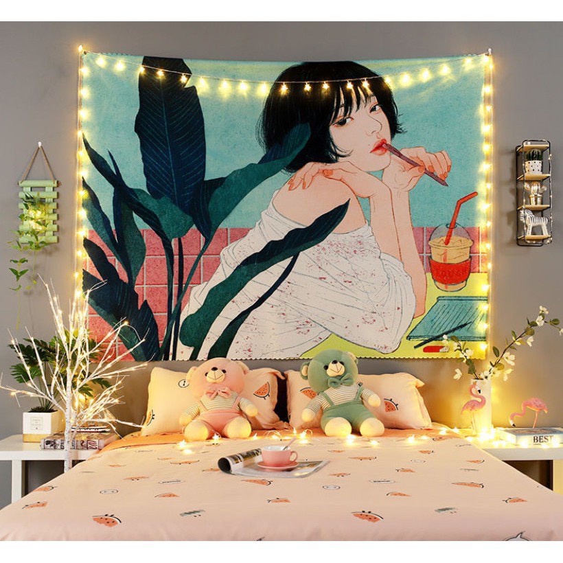 Giới thiệu [ĐẸP - SẴN NHIỀU MẪU] Thảm treo tường trang trí, Decor phòng đẹp (150x130cm, TẶNG móc treo, Đèn Nháy)