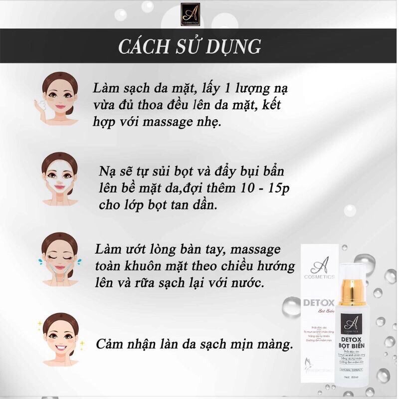 Chỉ với DETOX #ACosmetics Có ngay làn da trắng sáng không tì vết. Nguyên liệu được nhập khẩu từ Hàn Quốc 100%, cam kết không có hương liệu hay các chất gây hại cho da.