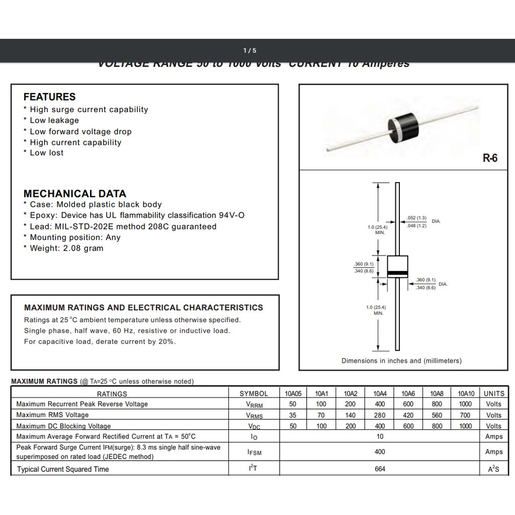 Giới thiệu Đi ốt - Diode chỉnh lưu 10A10 10A 1000V