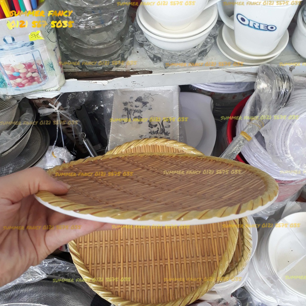 Nhà cửa & Đời sống > Bộ đồ bàn ăn > Dĩa || Dĩa 24cm tròn nhựa melamine phíp hoa văn mây đan , Dĩa tre Bamboo shaped plate F-DTR07Còn hàng