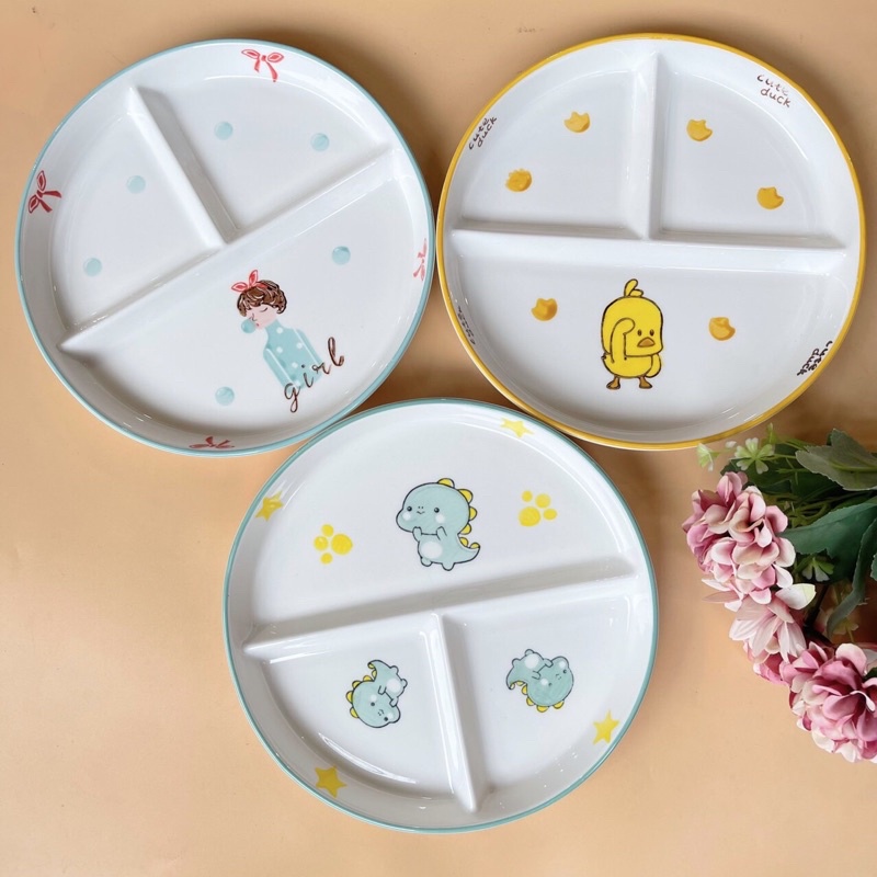 Nhà cửa & Đời sống > Bộ đồ bàn ăn > Dĩa || Đĩa 3 ngăn đựng đồ ăn, thức ăn dặm cho bé hàng gốm sứ siêu đẹpCòn hàng