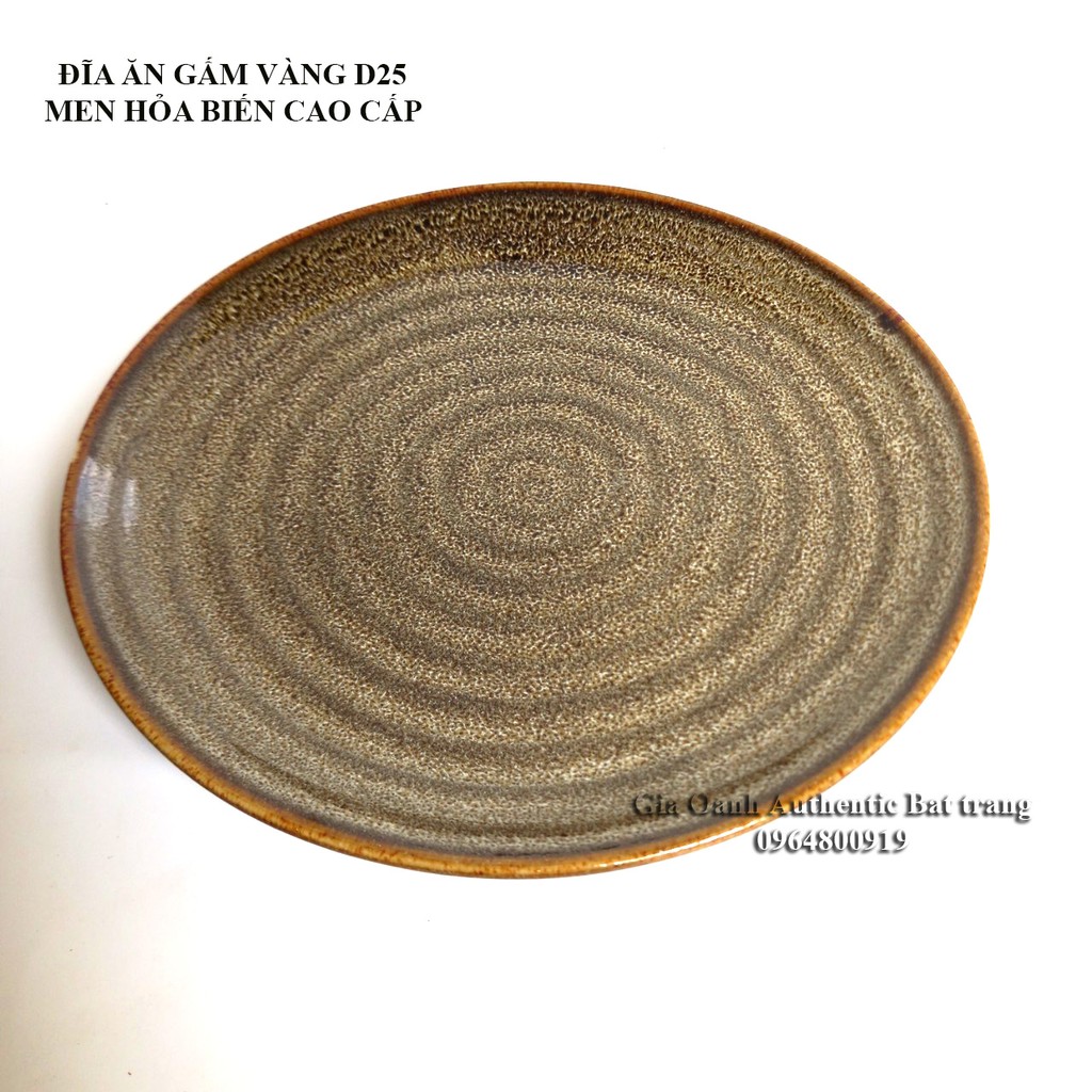 Đĩa ăn CAO CẤP men gấm vàng HỎA BIẾN – dùng cho nhà hàng khách sạn 5 sao. Xưởng gốm sứ Gia Oanh Authentic Bát tràng