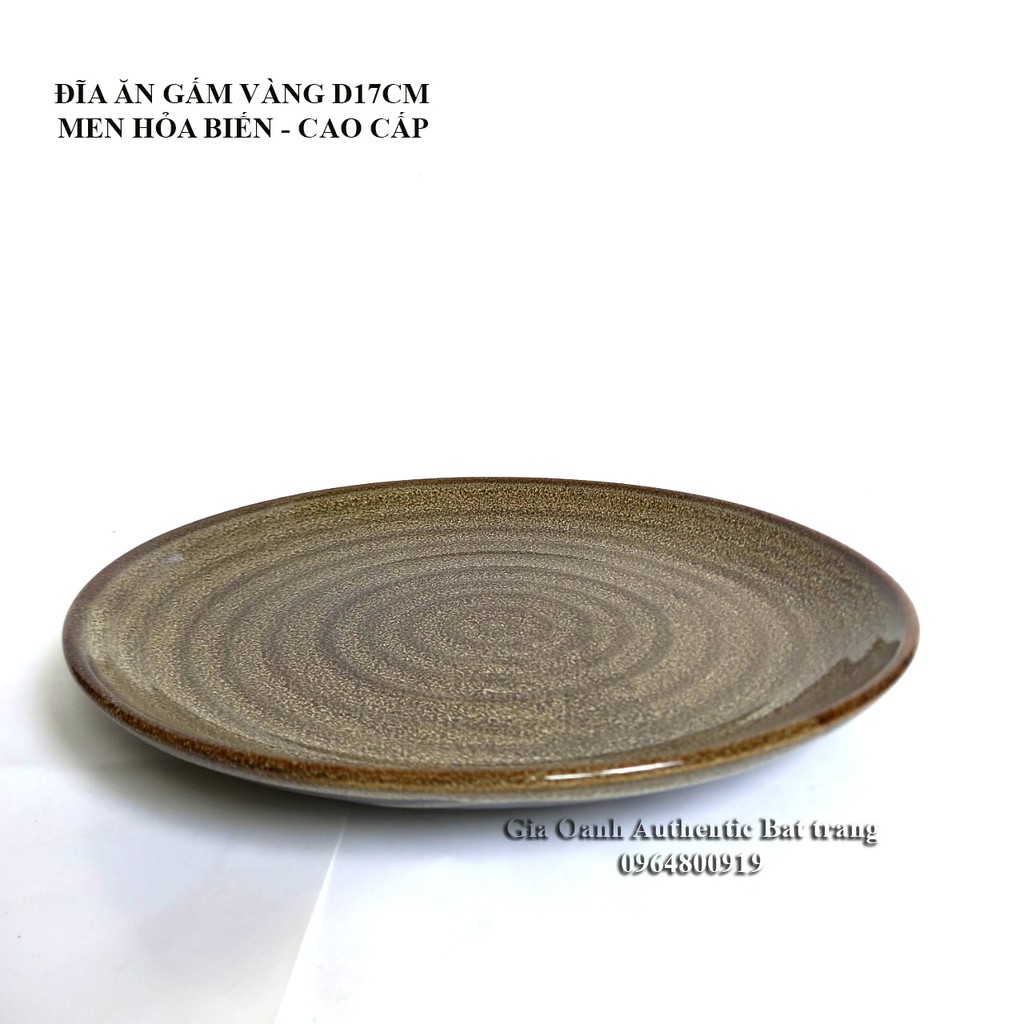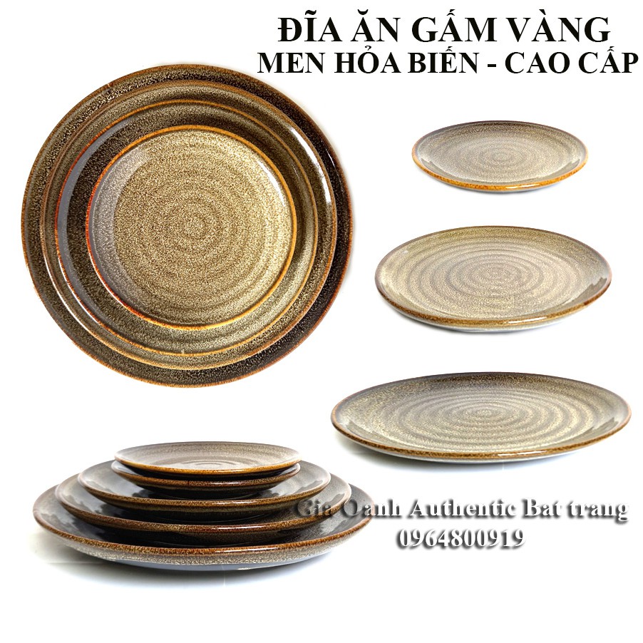 Giới thiệu Đĩa ăn CAO CẤP men gấm vàng HỎA BIẾN – dùng cho nhà hàng khách sạn 5 sao. Xưởng gốm sứ Gia Oanh Authentic Bát tràng