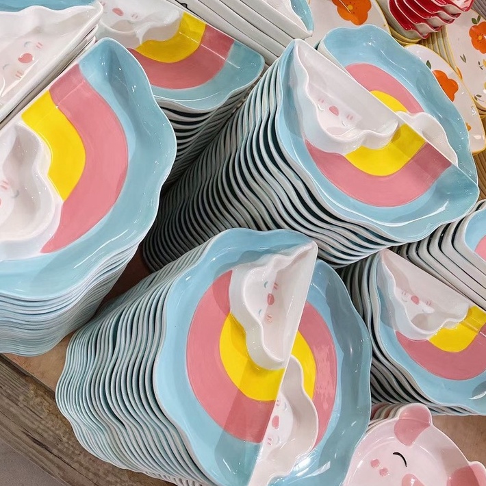 Nhà cửa & Đời sống > Bộ đồ bàn ăn > Dĩa || Đĩa Ăn Cho Bé Cầu Vồng Đĩa Sứ Decor Dễ ThươngCòn hàng