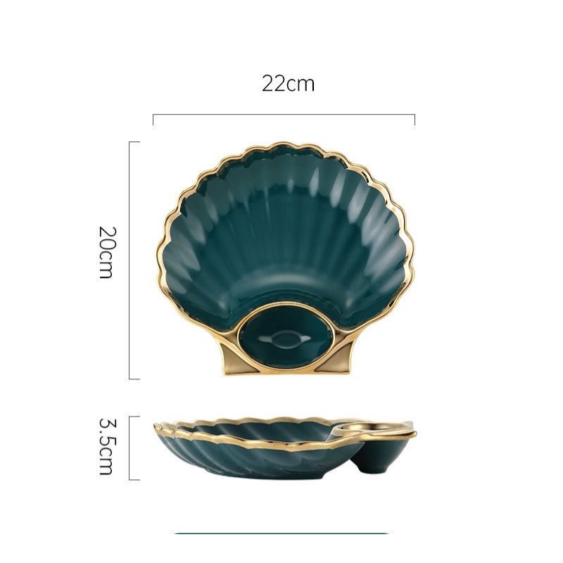 Giới thiệu Đĩa ăn, trang trí bằng sứ *𝑭𝑹𝑬𝑬 𝑺𝑯𝑰𝑷* Đĩa hình vỏ sò cách điệu kèm khay đựng nước chấm tiện lợi.