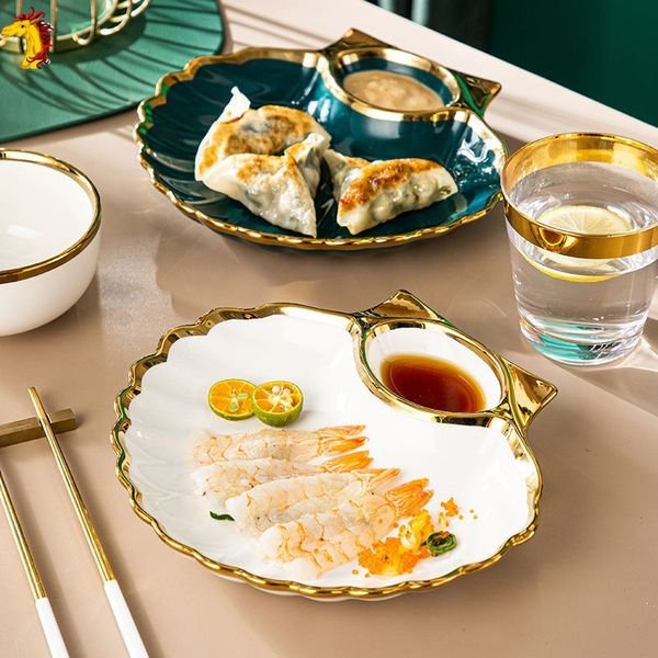 Đĩa ăn, trang trí bằng sứ *𝑭𝑹𝑬𝑬 𝑺𝑯𝑰𝑷* Đĩa hình vỏ sò cách điệu kèm khay đựng nước chấm tiện lợi.