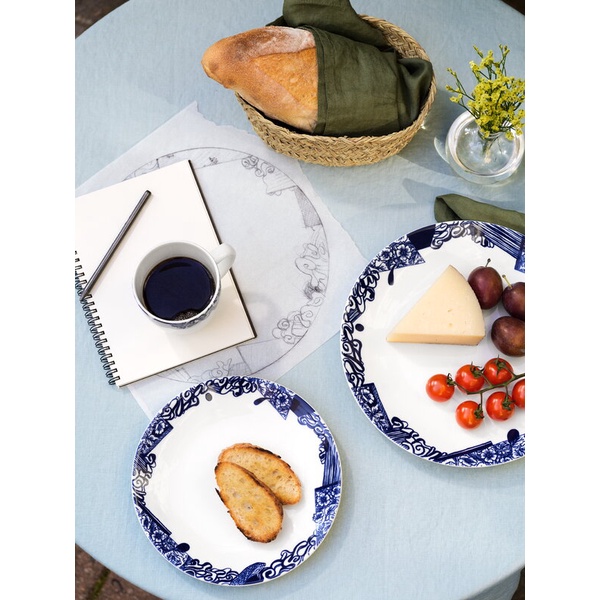 Bộ sưu tập Arabia 24h với vẻ đẹp vượt thời gian nay đã được bổ sung thêm họa tiết Piennar màu xanh lam mới. Những bông hoa tinh tế kết hợp cùng các họa tiết cắt ghép trừu tượng tạo nên một bức tranh sứ thú vị mang hòa âm giữa phong cách đương đại và truyền thống.