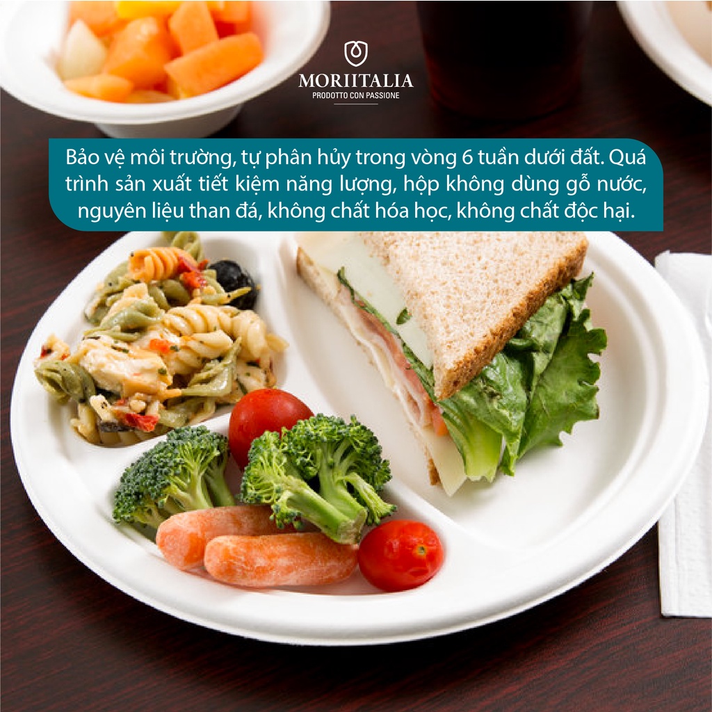 Giới thiệu Dĩa bã mía Kokusai 3 ngăn phân hủy sinh học Moriitalia 180855