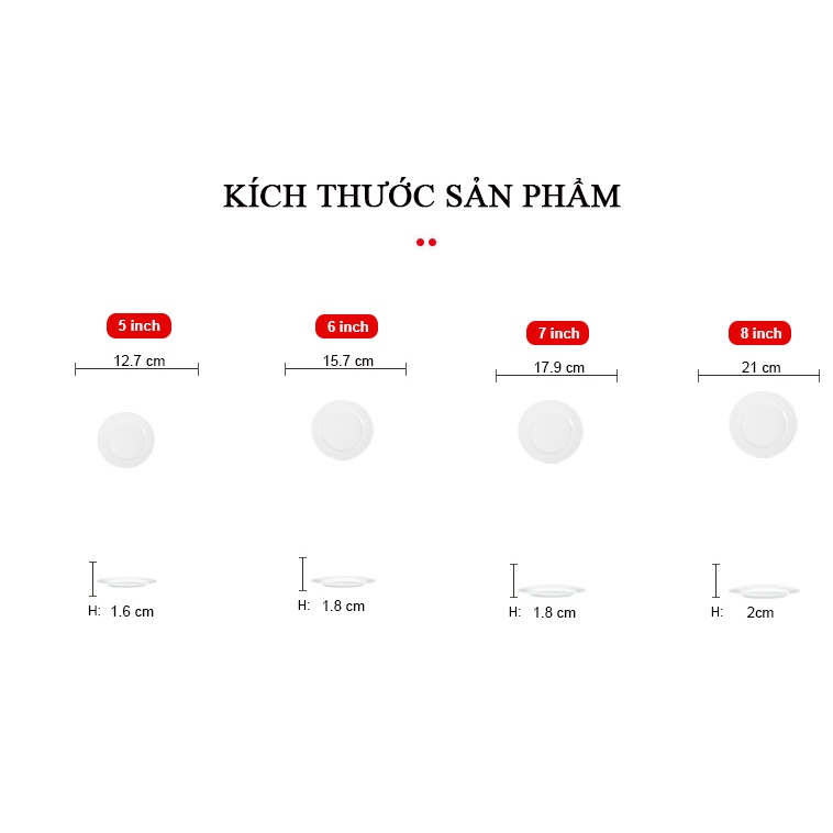 + Size 8inch: Chiều rộng 21cm, cao 2cm