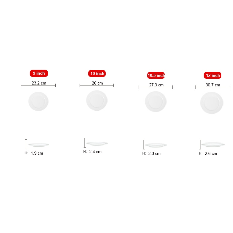+ Size 9inch: Chiều rộng 23.2cm, cao 2cm