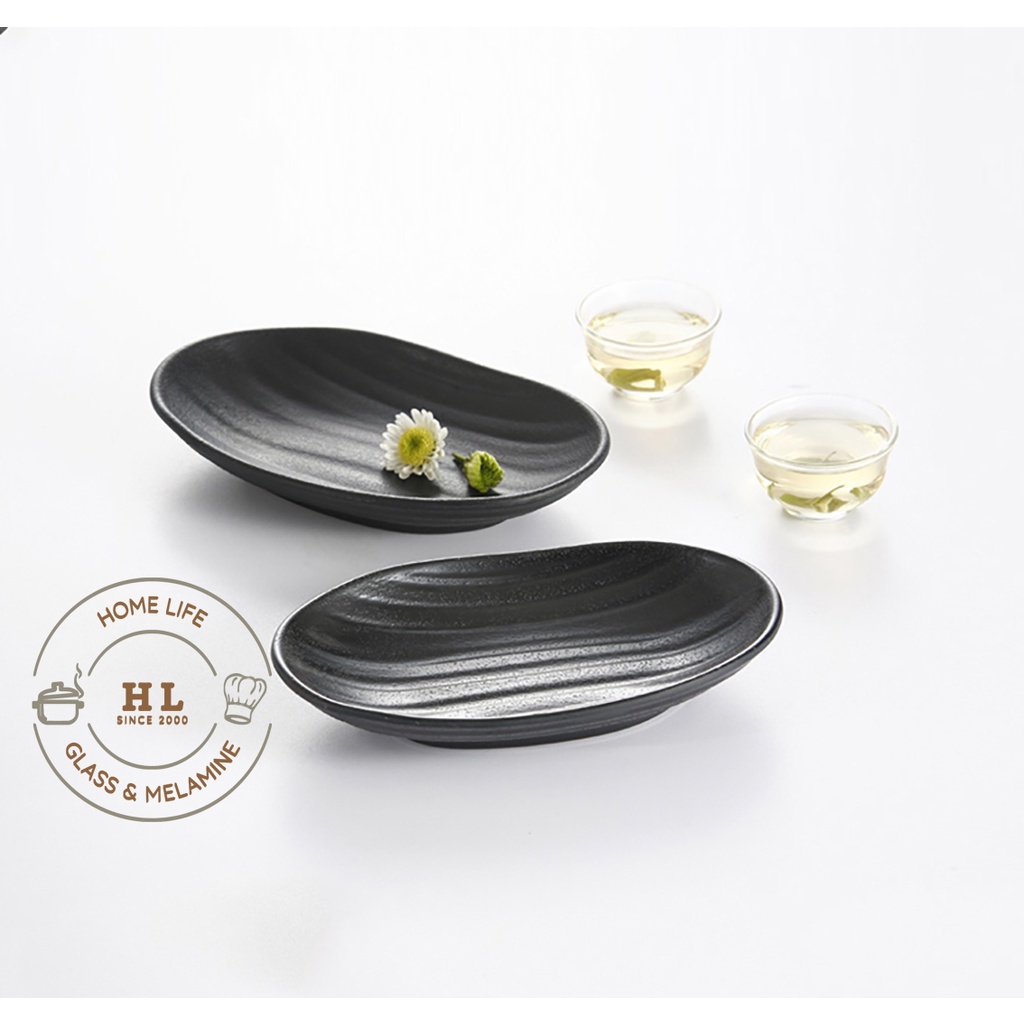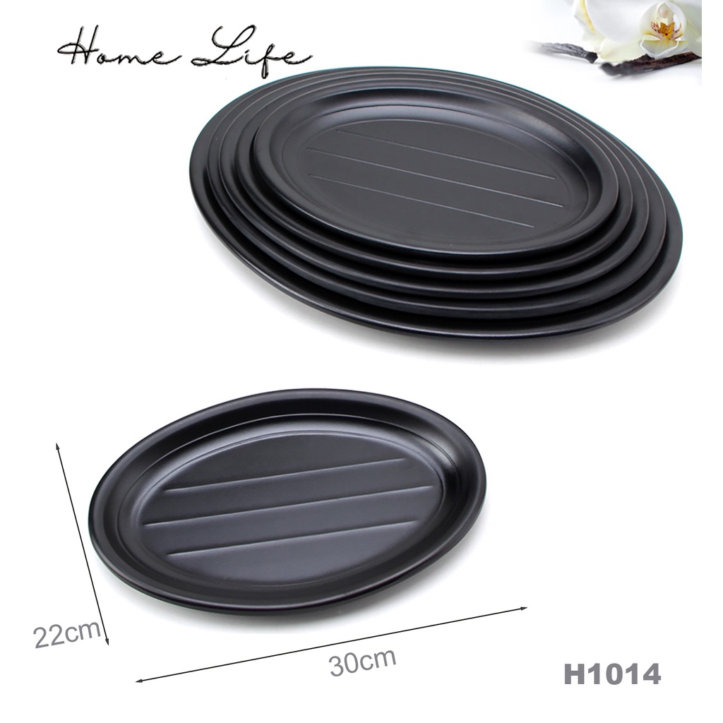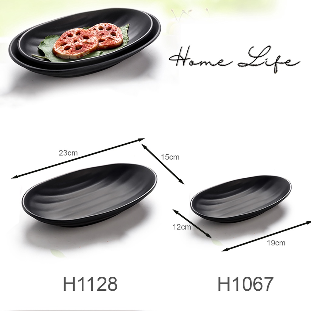 Nhà cửa & Đời sống > Bộ đồ bàn ăn > Dĩa || Đĩa bầu dục đen nhám có gân sọc | Đĩa Xoài Melamine A5 Bầu Dục H1067 H1128 H1014 Chống Cháy Đài LoanCòn hàng
