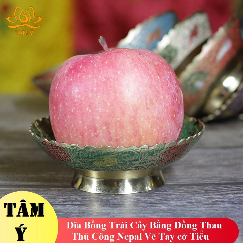 Đĩa Bồng Trái Cây Bằng Đồng Thau Thủ Công Nepal Vẽ Tay Cỡ Tiểu